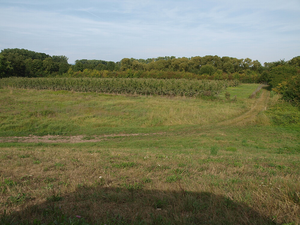 Umwandlung der intensiv genutzten Acker- und Obstbauflächen in extensiv genutztes, von Grünland geprägtes, reich strukturiertes (Halb-)Offenland